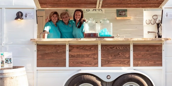 Four family members see a rusty old, 17-foot-long horse trailer online with loads of potential and a reasonable price tag. Beneath all the red rust and rotted metal, they envision a classy yet quaint mobile bar customized with three serving stations and four ice-cold beer taps. The next morning, they drive 220-some miles to buy the trailer, but before they can tow it home, it needs new tires and its doors need to be bungeed shut. They pour their blood, sweat and tears into the project, and the rest is history. Check out the transformation photos and videos.